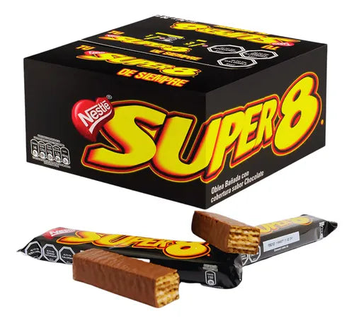 El clásico chileno que nunca falla. Crujiente, dulce y directo al corazón. El Súper 8 es esa barra de oblea con chocolate que todos en Chile conocen y aman. Perfecto para el recreo, la once o un antojo express. Con su textura crack, su sabor inconfundible y su estilo inigualable, es más que una golosina: es parte de nuestra historia.